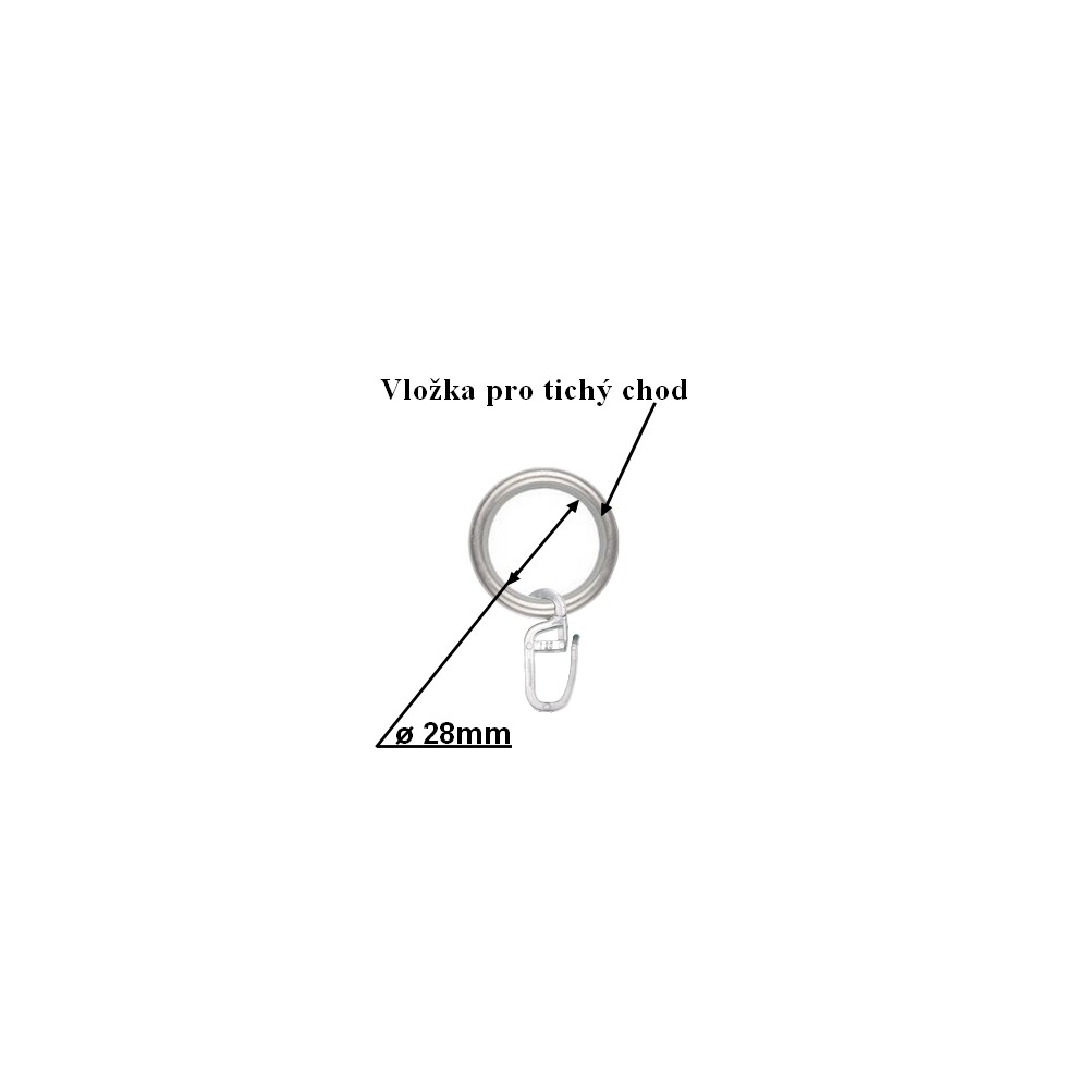 • Kroužky s žabkou či háčkem. Jsou vždy po každých 10cm. Např. jednořadá kovová garnýž 100cm obsahuje 10ks kroužků, dvouřadá 100cm pak 20ks kroužků. Případně bez kroužků při volbě na tunýlek.
