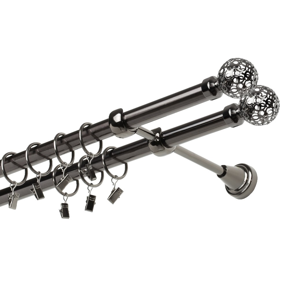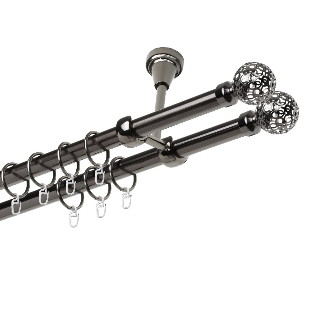 Garnýž kovová dvouřadá 19mm Koule retro double onyx