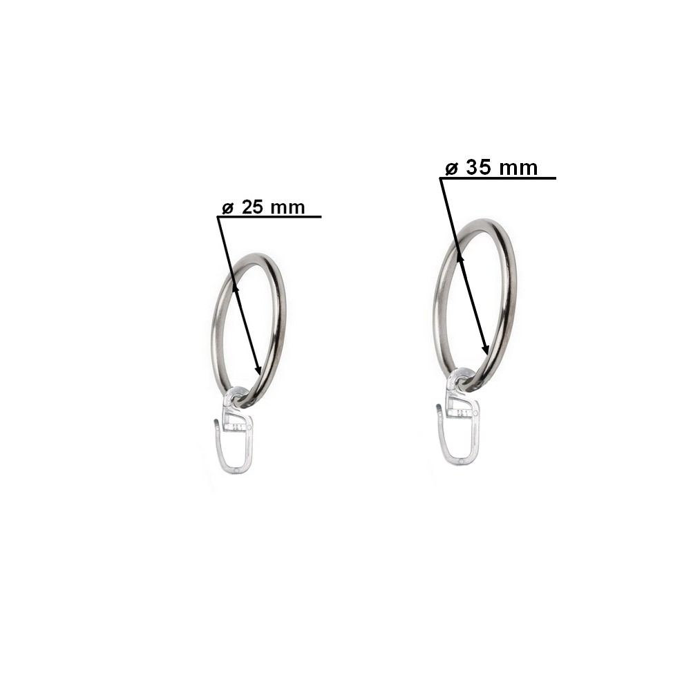 • Kroužky s žabkou či háčkem. Jsou vždy po každých 10cm. Např. jednořadá kovová garnýž 100cm obsahuje 10ks kroužků, dvouřadá 100cm pak 20ks kroužků. Případně bez kroužků při volbě na tunýlek.